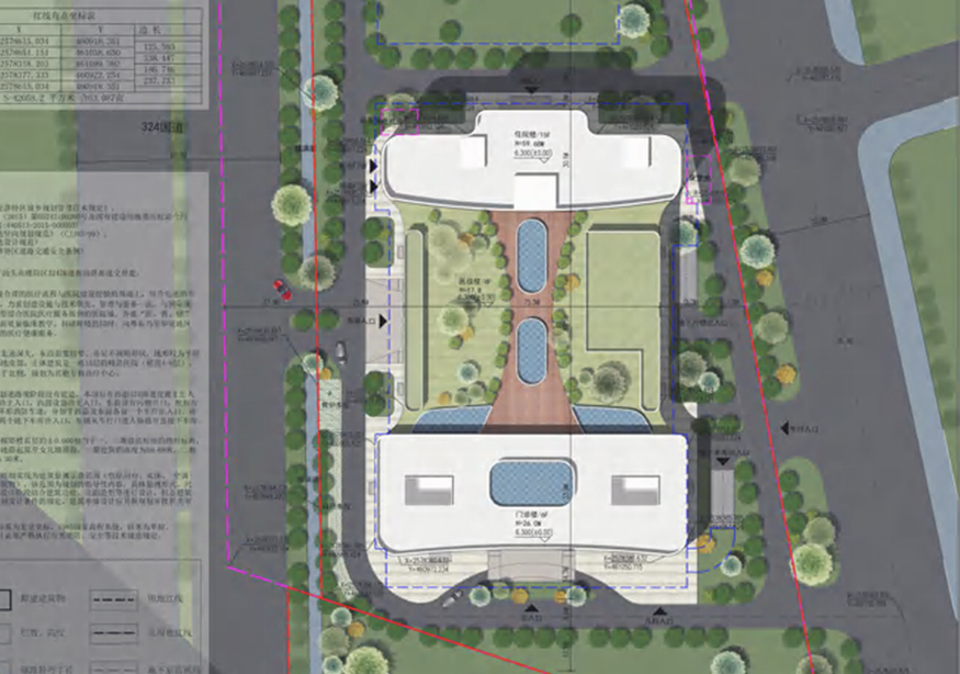 本項目位于汕頭市潮陽區棉北街道棉田居委寶峰巖下,基地西側緊臨324國道,南側臨汕湛高速高架橋,區域環境優美。項目規劃用地同核心醫療和診療中心組成,用地合計約為108畝,規劃總建筑面積約7.7萬平方米(含地下約1.2萬平方米),規劃總床位數為600 床,遠期發展診療中心規劃總床位600床。