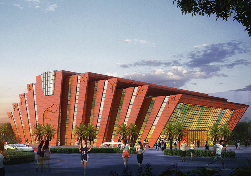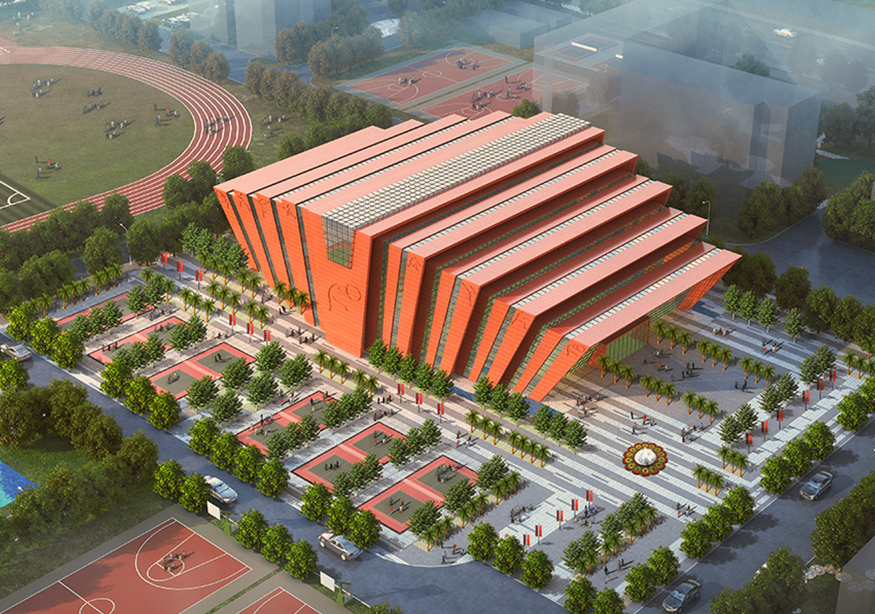 原學校顏色以灰白色為主要色調,中學是一個年輕人集聚的場所是一群有朝氣,活潑的祖國未來的花朵。紅色代表著熱量、活力與意志力。因此體育館設計采用紅色作為主要色調。符合體育館的建筑性格。點綴整個校園,點燃學生的激情。