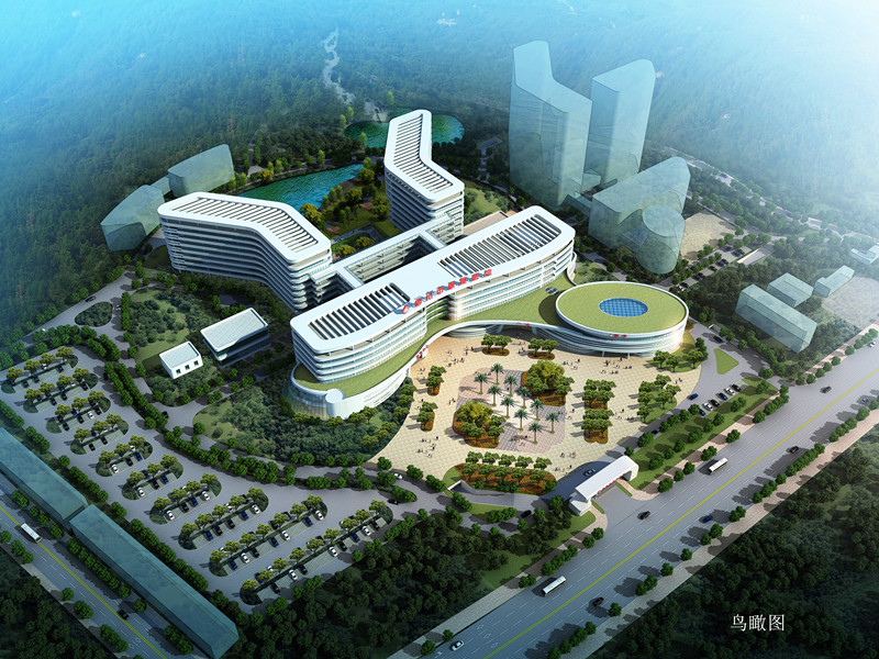 整體規劃建筑物后退東側南嶺大道較遠距離,為人群及車流預留出大量活動空間,同時也遠離市政噪音及汽車尾氣污染,為社會提供方便、舒適、安全、優美的醫療康復環境。